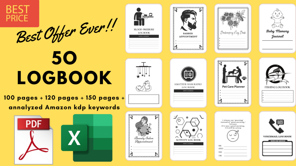 Get Best 50 LogBook Bundle With Keywords (100 pages,120 pages,150 pages + amazon ANALYZED KEYWORD SEARCH).