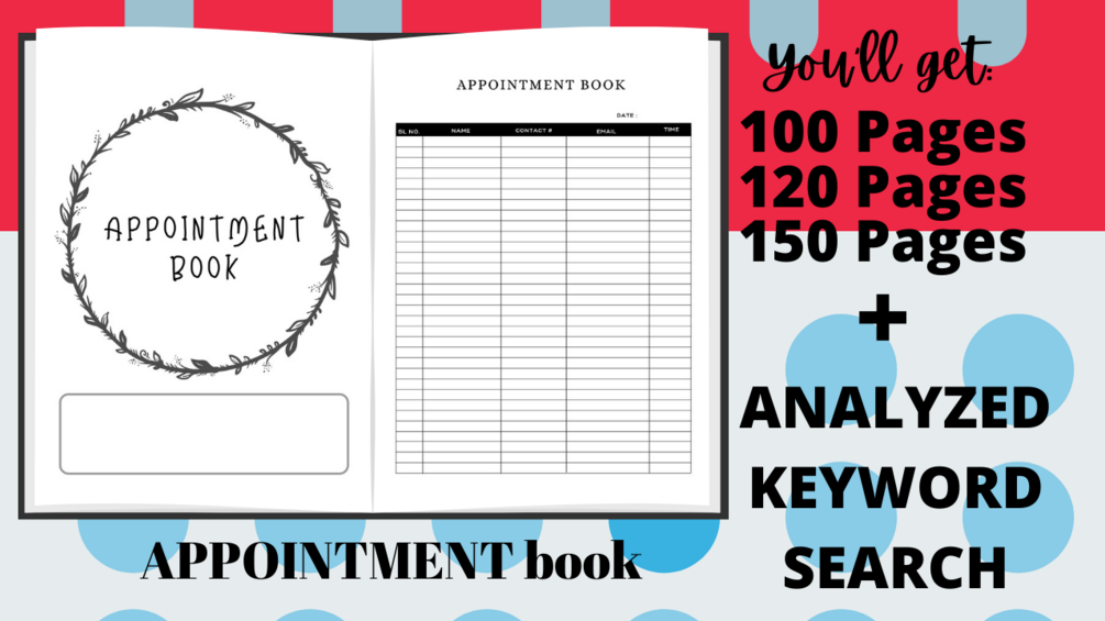 Get Best Appointment Log Book (100 pages,120 pages,150 pages + amazon ANALYZED KEYWORD SEARCH).